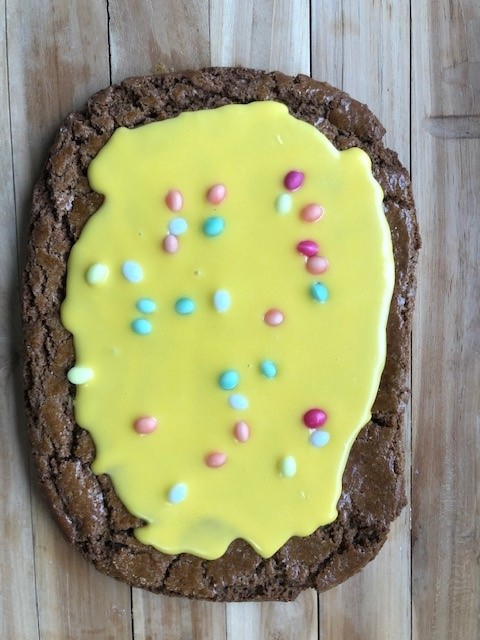 Een heerlijke speculaasbrok met een krokant laagje van buiten en een zachtaardige afbeet. Afgewerkt met een laag zoete fondant en eitjes